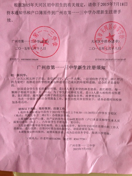 广州奥数网:随着2015年7月14号广州小升初的微机派位结束,广州2015年小升初基本结束了,目前广州市一一三中学新生注册开始了!