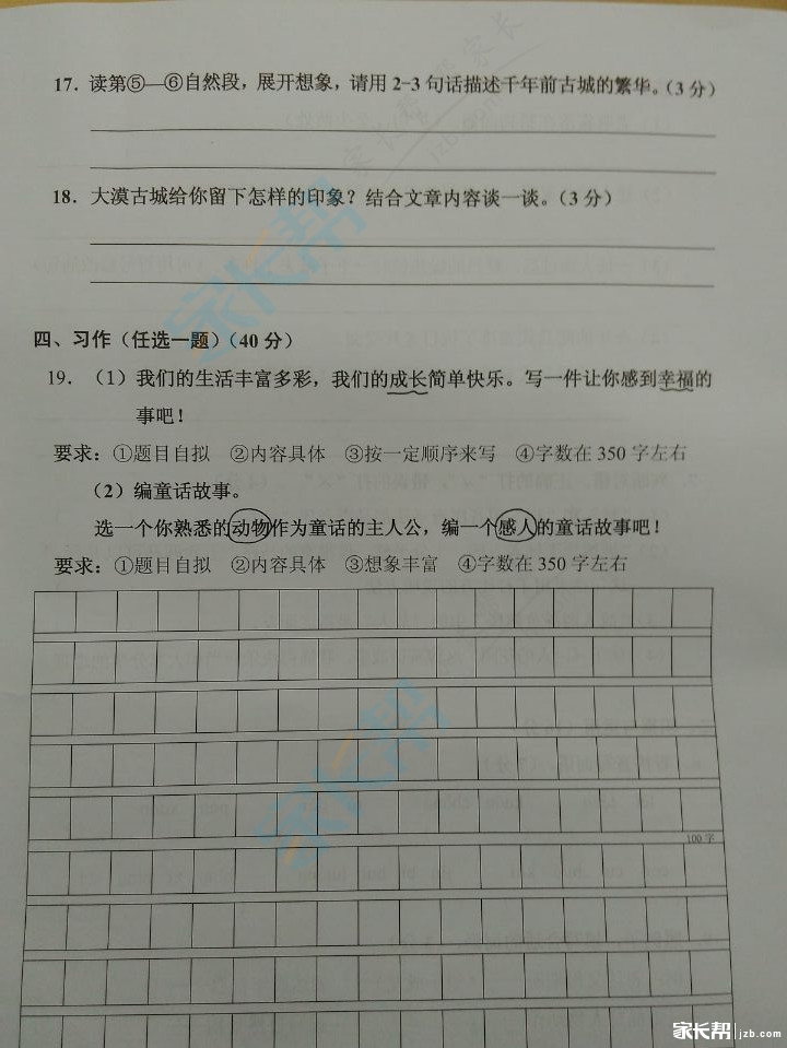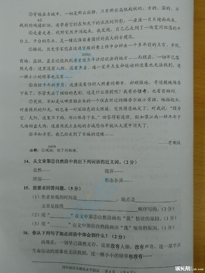 2016广州天河区四年级下学期语文期末试卷(2)