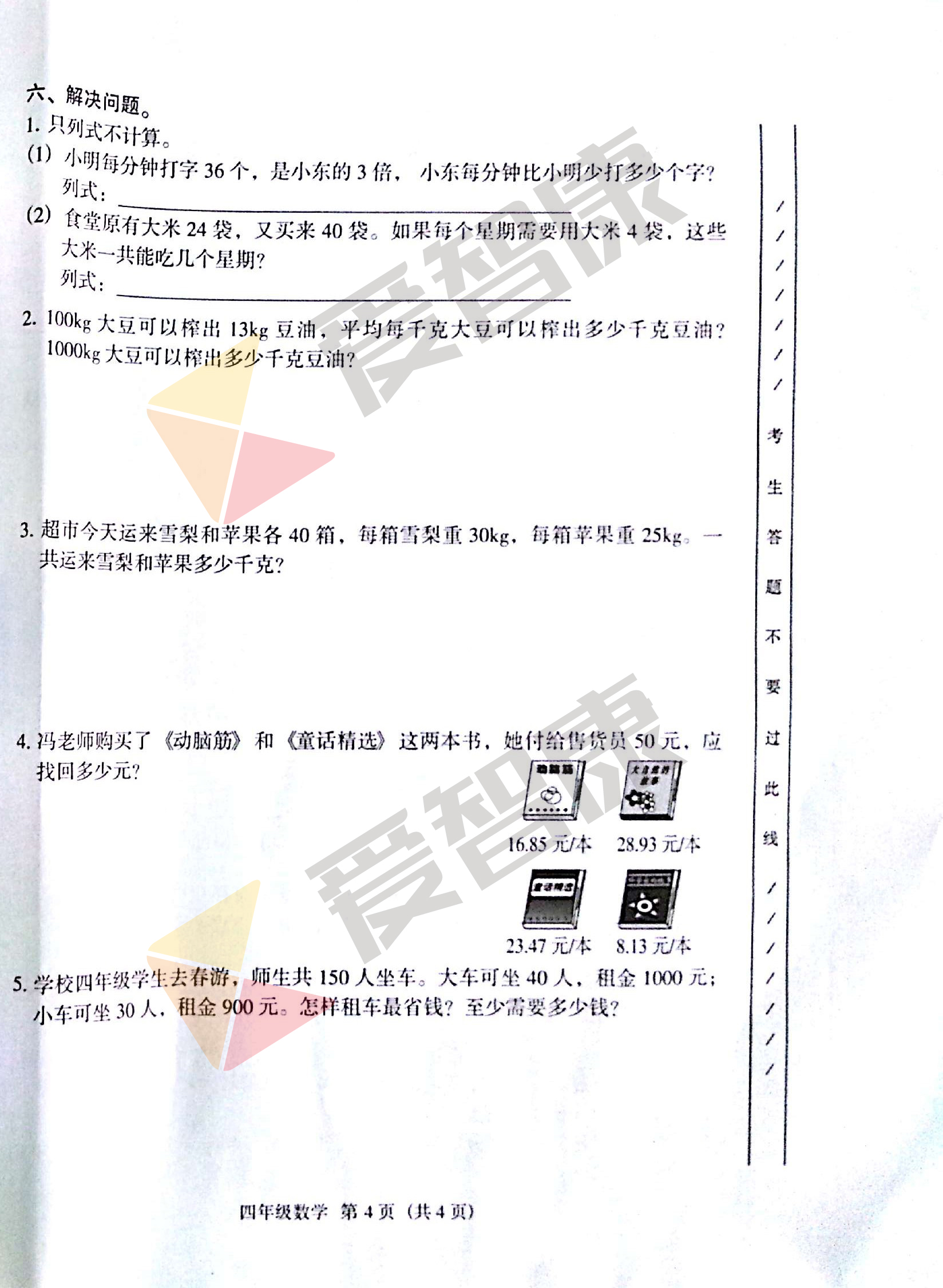 2016广州珠海区四年级下学期数学期末试卷(2)