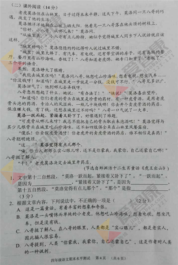 2017年广州天河区四年级下学期语文期末试卷(4)