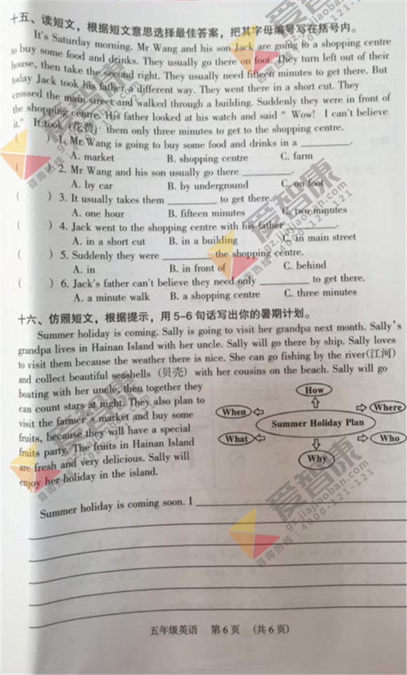 2017年广州越秀区五年级下学期英语期末试卷(6)
