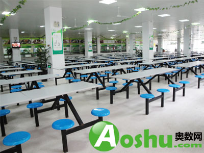 学校配用食堂一和食堂二两个食堂。其中一食堂共18个窗口,餐厅很大。