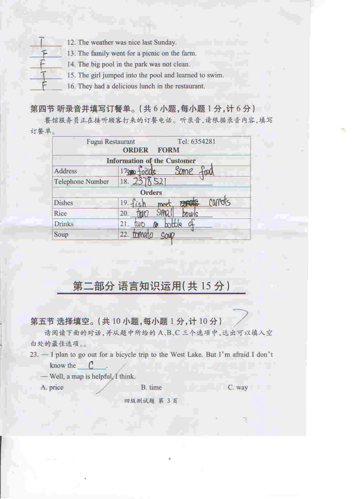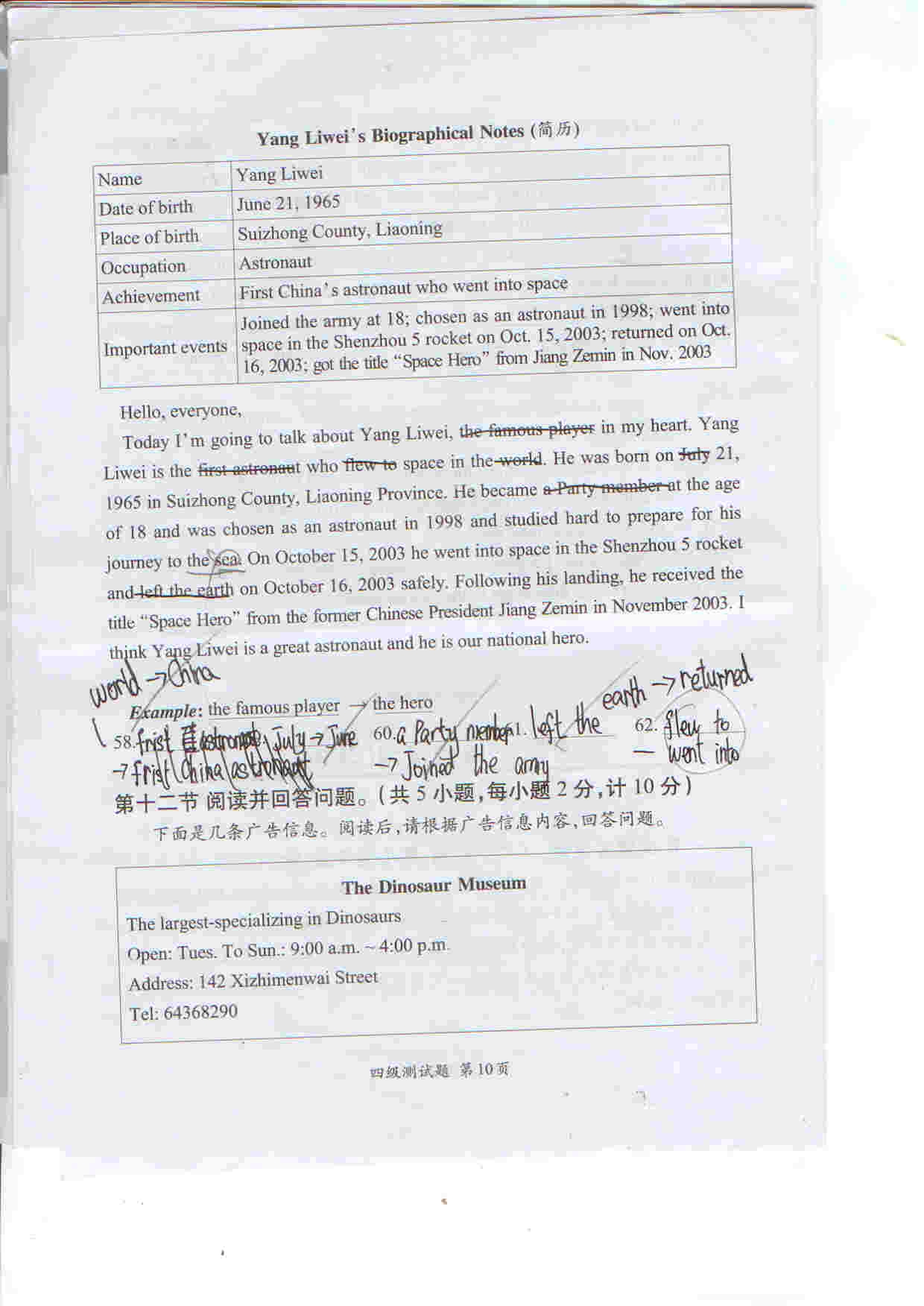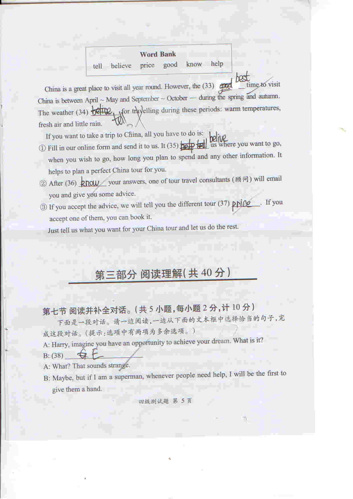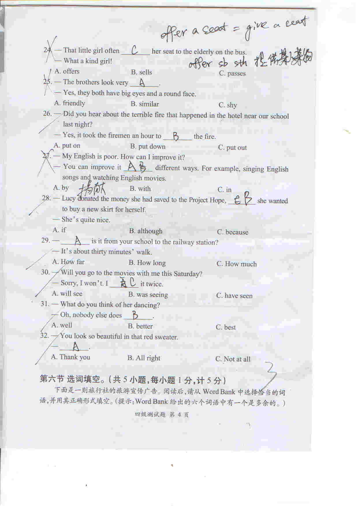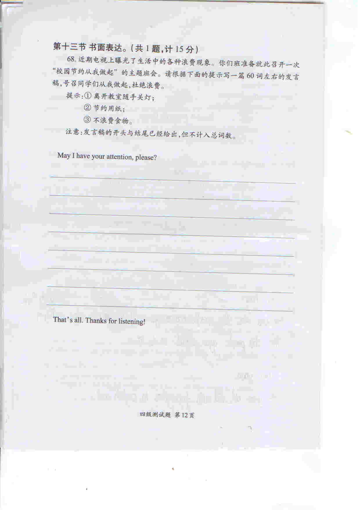 合肥奥数网讯:上午发了听力,小编现全部献上习思英语考试四级试卷。