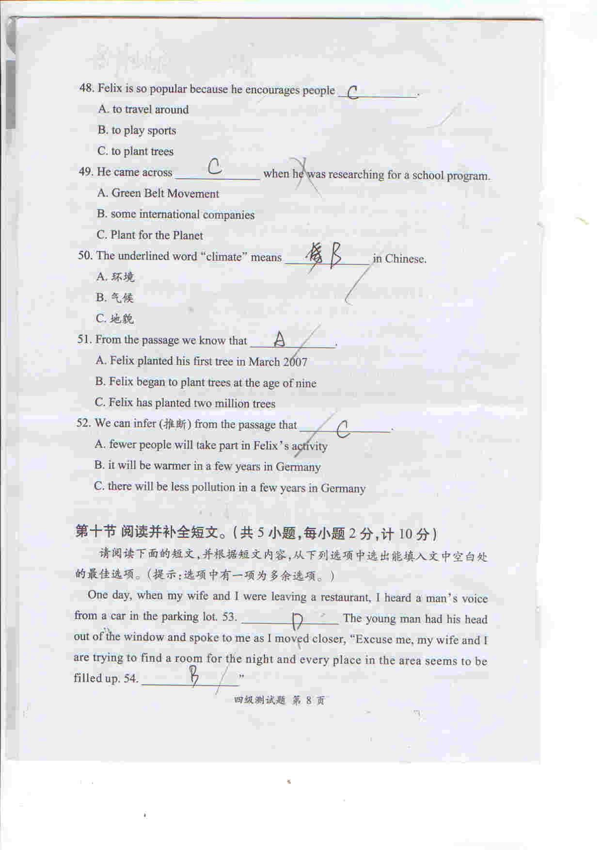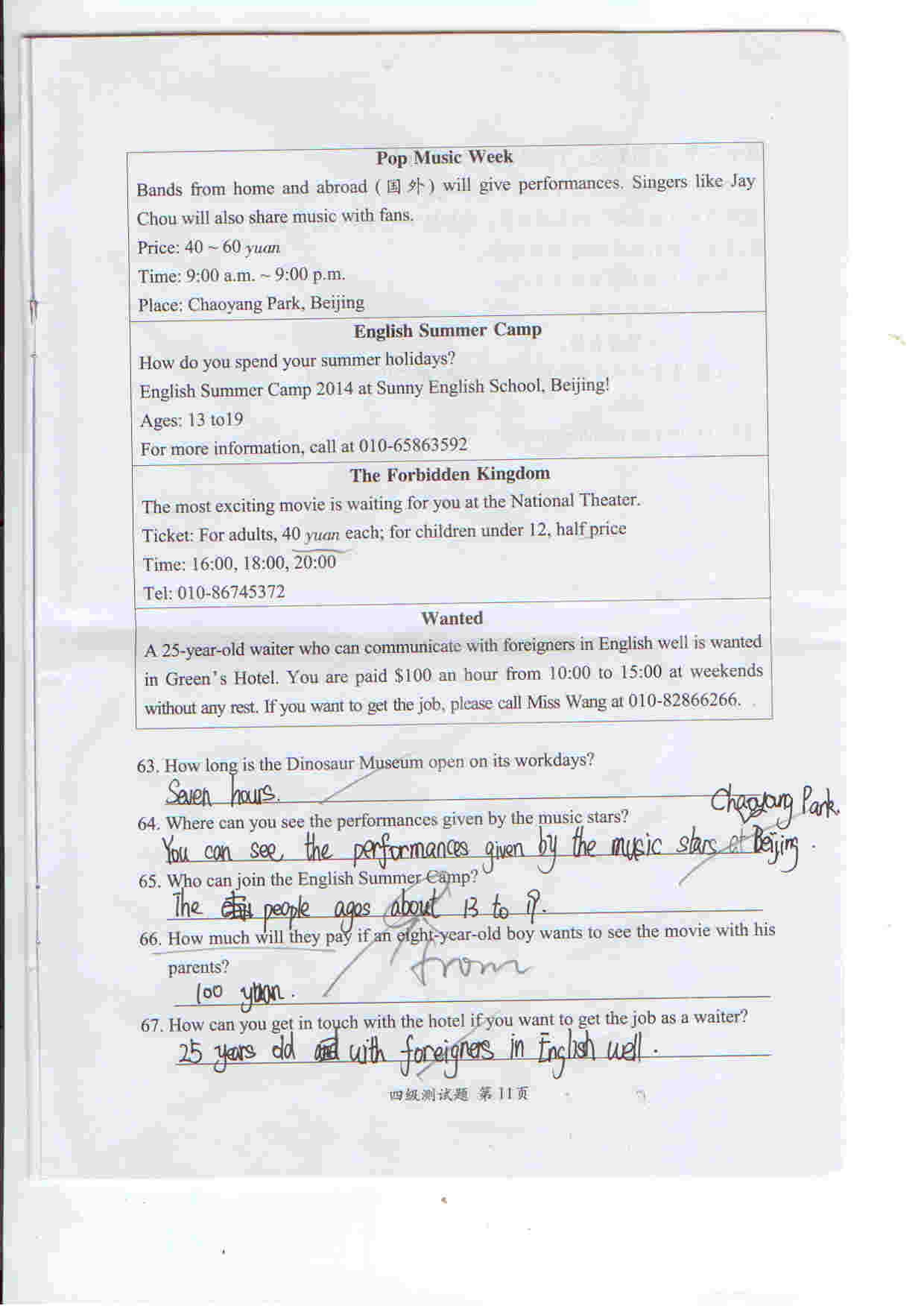 2014年合肥习思英语考试四级试卷