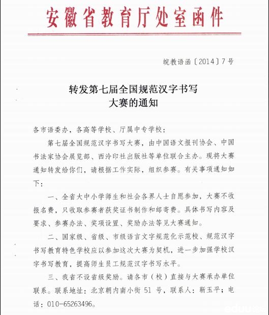 【查看原帖并参与讨论:合肥市教育局:关于参加2014年规范汉字书写大赛通知】
