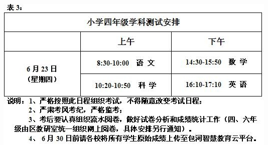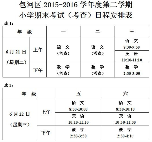 时间:6月21日(三年级)、6月22日(五、六年级)