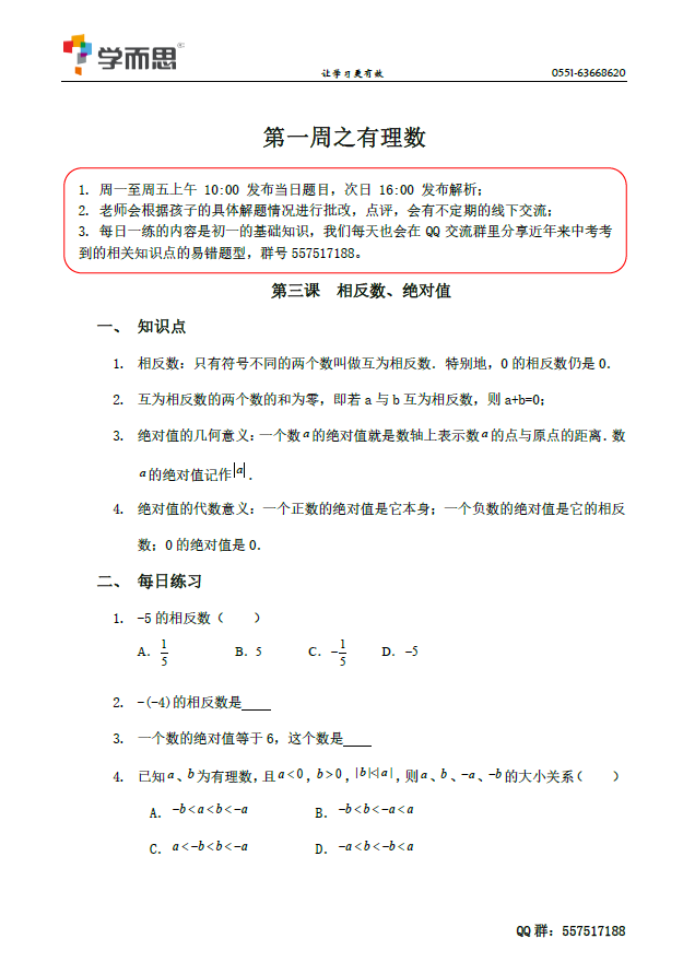 合肥奥数网:孩子没有小升初压力,如何做好新初一衔接?新初一知识储备,让我们即刻开始。一起来学习吧~今天是相反数和绝对值。