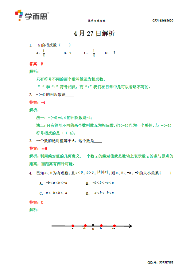 新初一衔接:数学有理数之相反数绝对值(2) 合肥奥数网 2016-06-07 14:36:43 编辑推荐: 2016年合肥小升初数学专项练习题及答案 2016年合肥寿春中学(滨湖)小升初考试试题 2016年合肥寿春中学(南国)小升初考试试题 2016年合肥科大附中小升初考试题回忆版 2016年合肥各区小升初招生政策汇总 首页 上一页 下一页 尾页