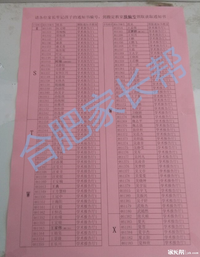 2016年合肥四十六中本部初一新生名单(5)