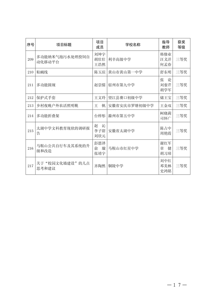 2016年安徽省青少年科技创新大赛获奖名单(17)