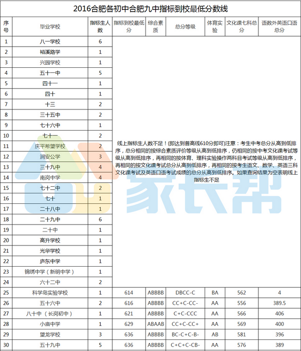 合肥省示范高中录取分为统招和指标到校。2016年的九中统招线是固定的,714分。但是指标到校是各校根据名额,在统招线以下从高分到低分录取,所以就导致各个学校进入到九中的分数不一样,这就是合肥各初中九中指标到校最低分数线。