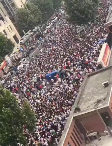 现场:最高峰校门口队伍长达500米
