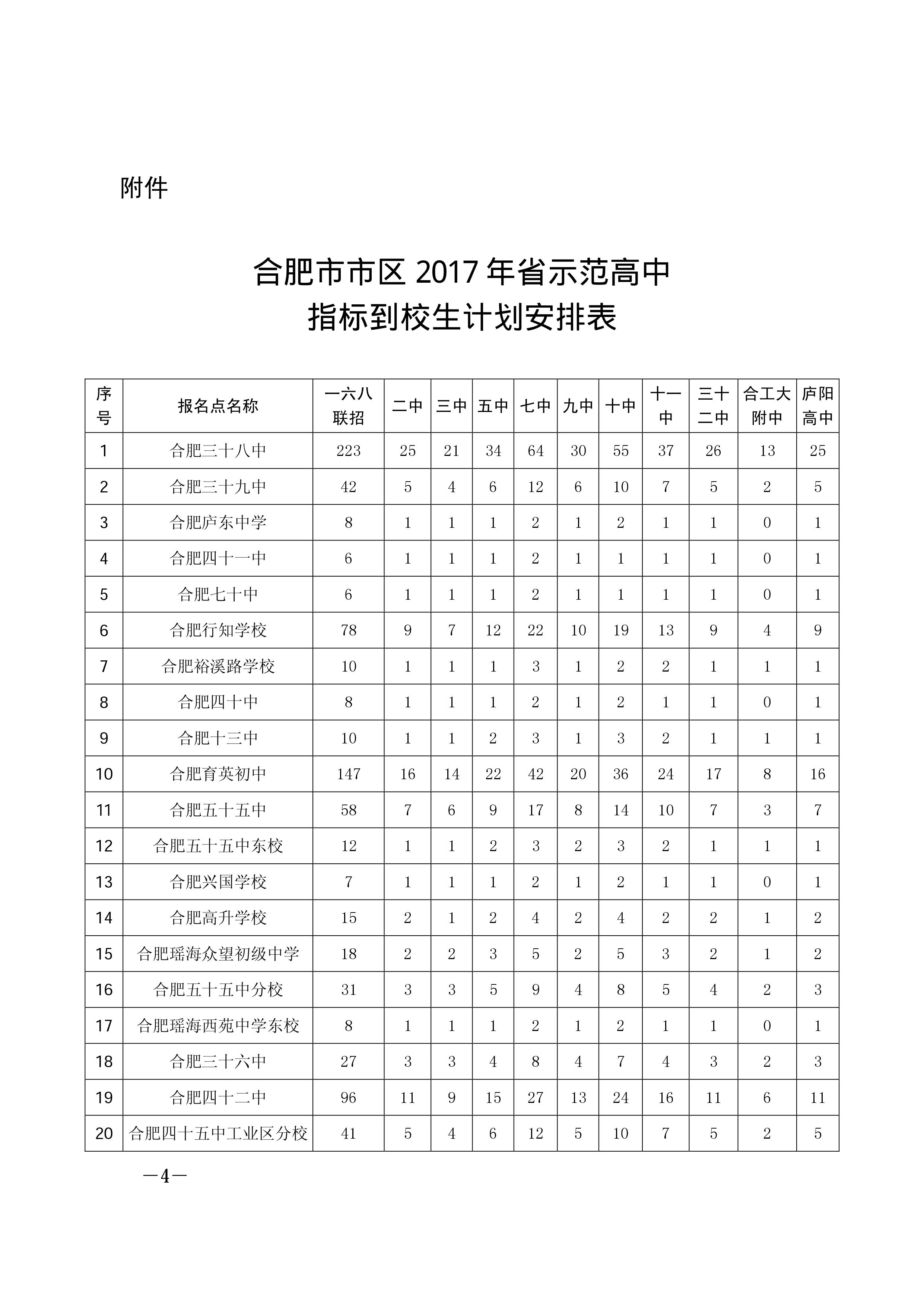 2017合肥市区省示范高中指标到校生计划安排通知(4)