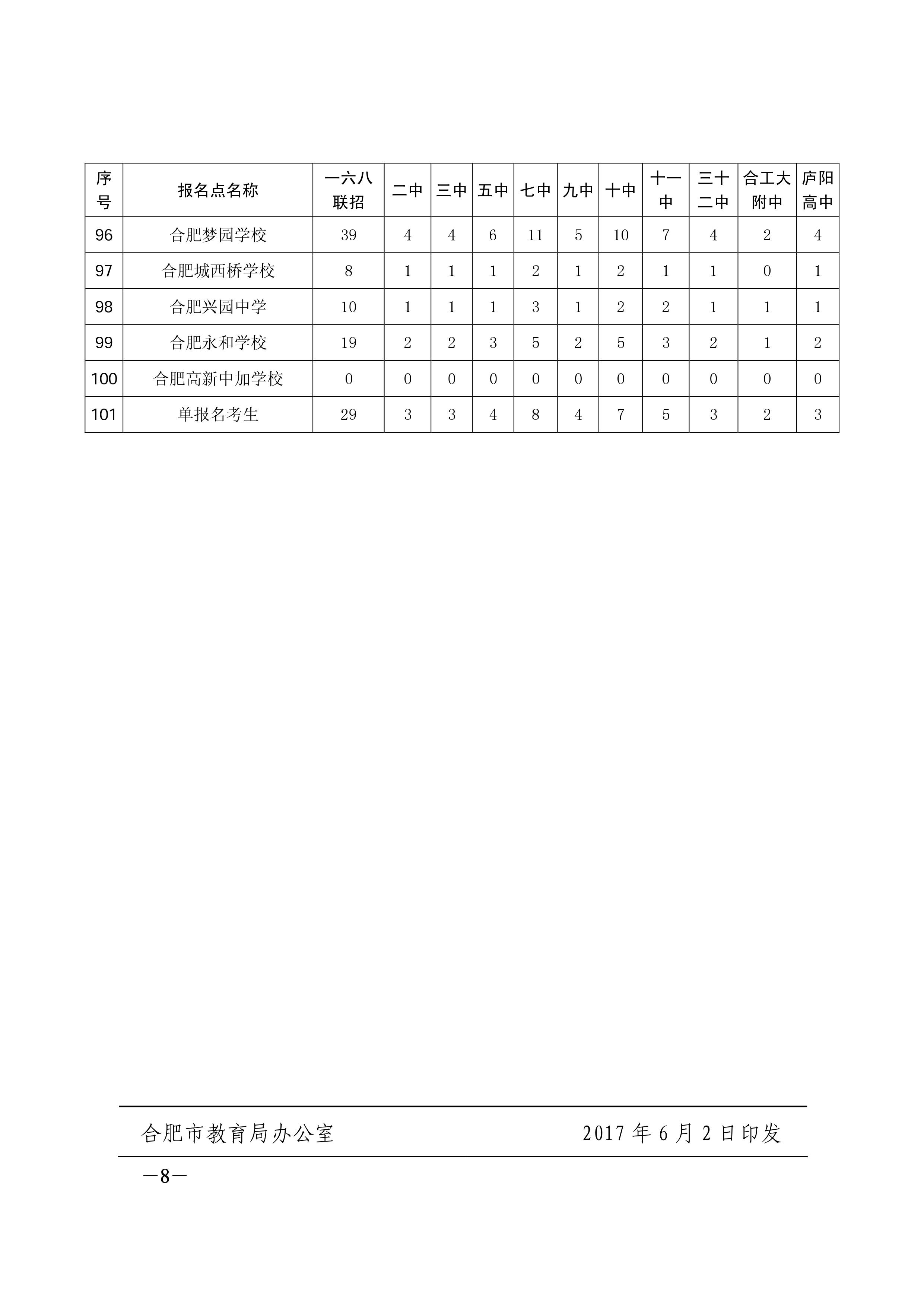 2017合肥市区省示范高中指标到校生计划安排通知(7)
