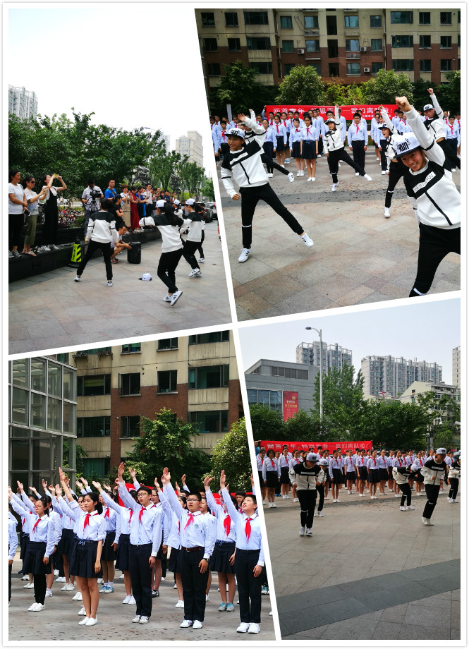 5月31日中午,我校七年级7班、9班、25班和32班的同学们,在老师的陪伴下于校园外进行了“快闪”活动,这也标志着七年级少先队的离队活动正式拉开了序幕。