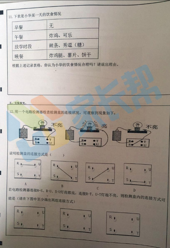 2017年合肥市学业水平测试四年级科学试卷(3)