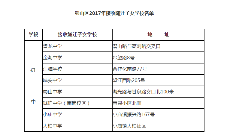 2017年合肥蜀山区随迁子女义务教育阶段入学指南