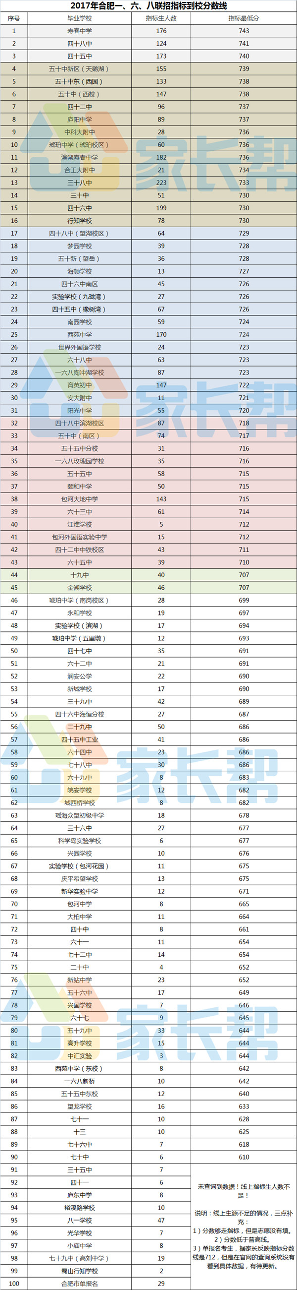2016年和2017年合肥各区学校一六八指标到校情况统计(4)