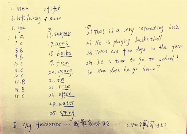 2017年合肥四十六中小升初分班考具体内容(回忆版)