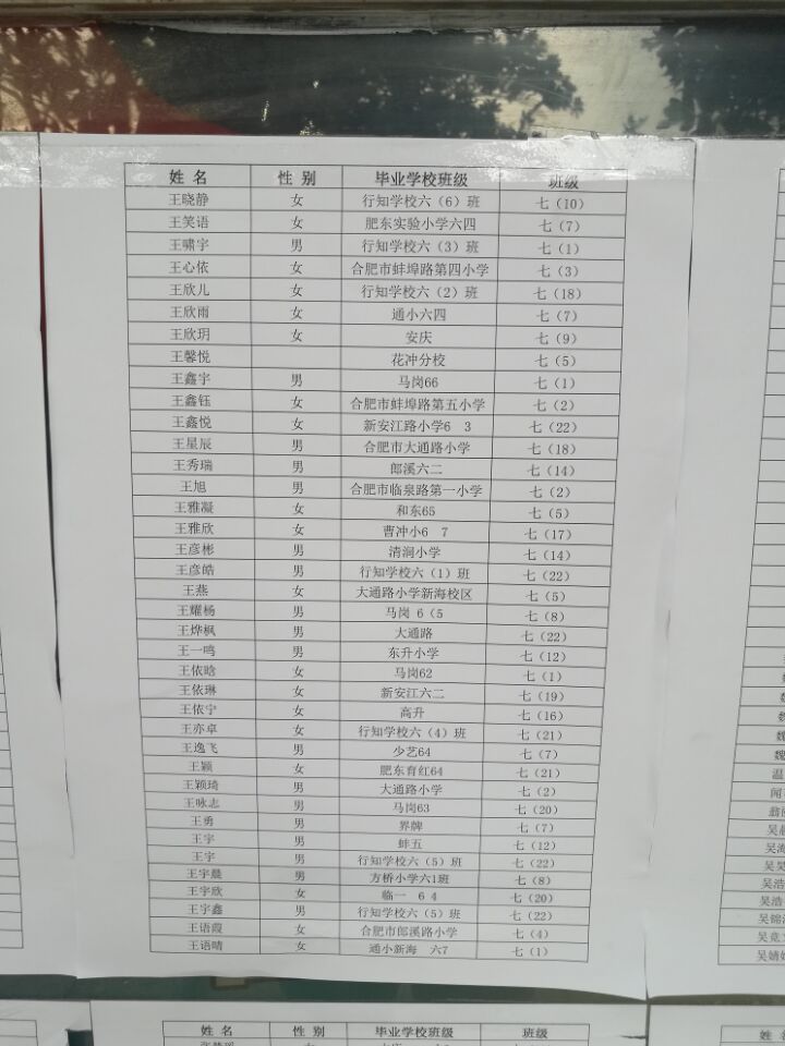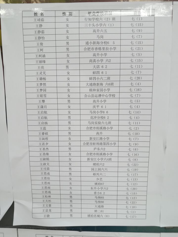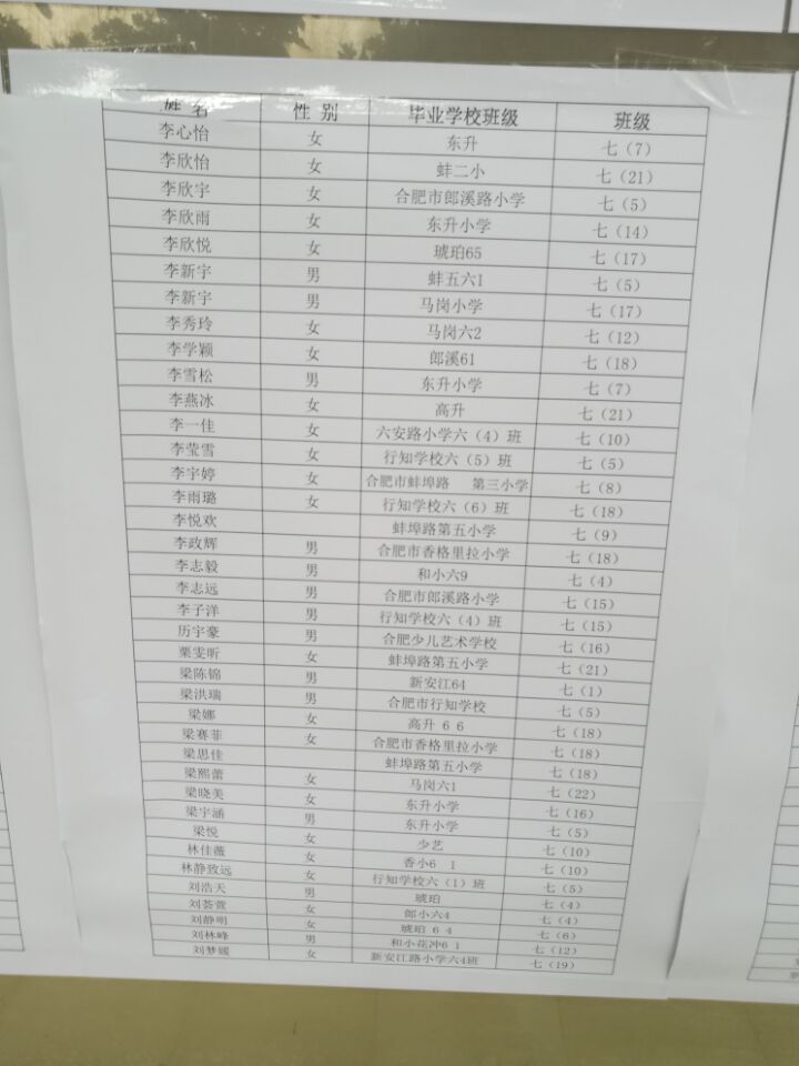 2017年合肥行知中学小升初新生分班名单(10)