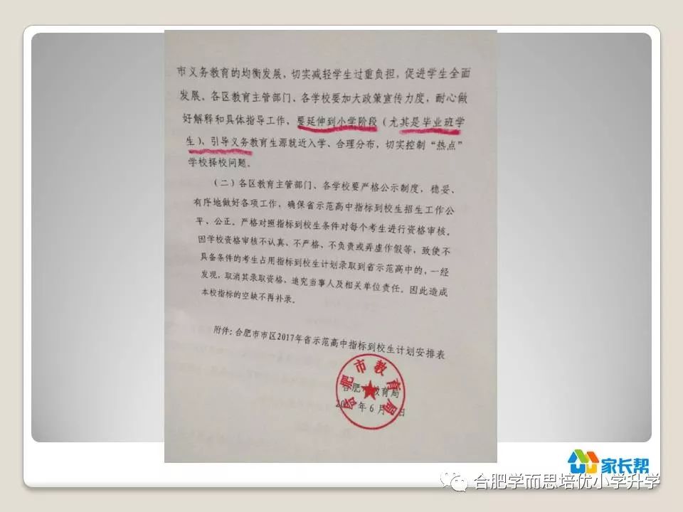 这是今年教育指标到校文件里面的,要求对指标到校政策的解释和引导工作,要延伸到小学阶段,尤其是毕业班。为啥呢?