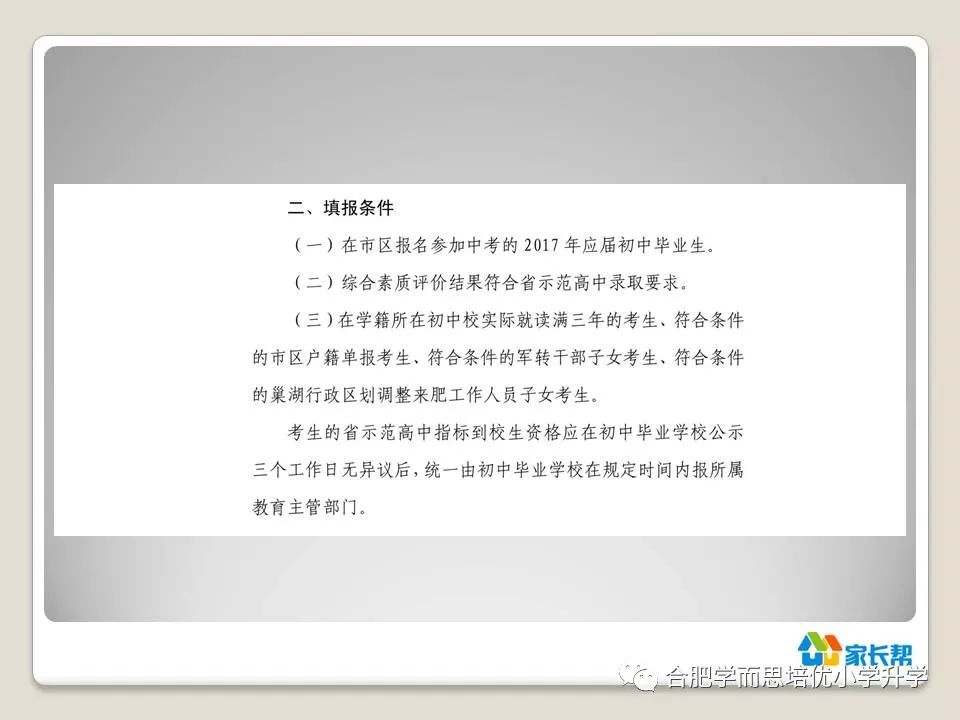 这是从今年的教育局文件里面截图的。但是简单来说呢,其实就是学籍和户籍,有一个是在合肥就行了。