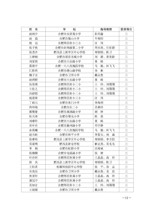 2017年合肥第34届信息学市赛小学组获奖名单(11)