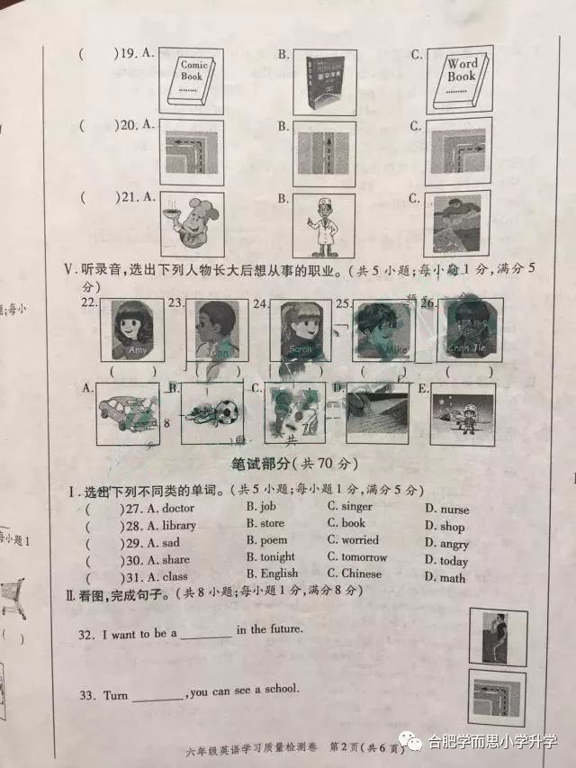 2018年合肥瑶海区六年级调研考试英语试卷(2.28)(2)