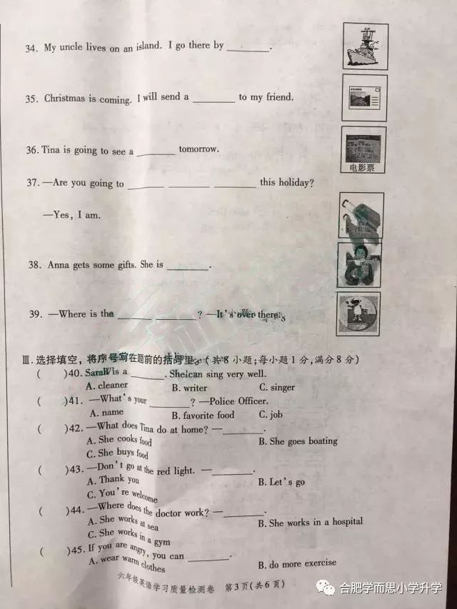 2018年合肥瑶海区六年级调研考试英语试卷(2.28)(3)
