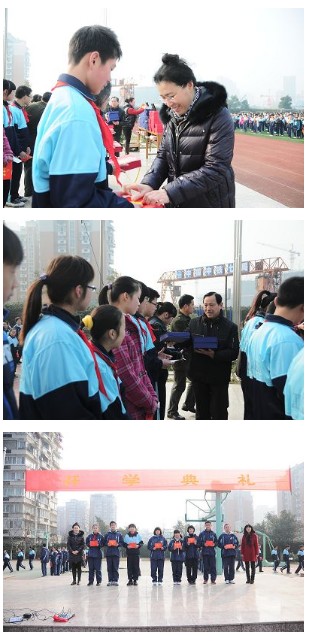 升旗仪式结束后,初一年级高谦老师和209班的吕伊加同学分别作为教师代表和学生代表上台与大家分享了自己的一些想法和思考,情真意切、感人肺腑!紧接着,周素颖副校长和李征主任分别宣读了2010学年第一学期金兰、银兰奖获得者名单,三好学生、优秀班干部、优秀课代表、文体积极分子、优秀护校队员名单。曾君主任宣读常规优胜班级名单,完毕后,集团领导和学校领导分别为受表彰的学生和班级颁奖。