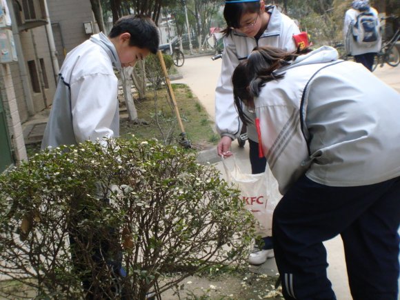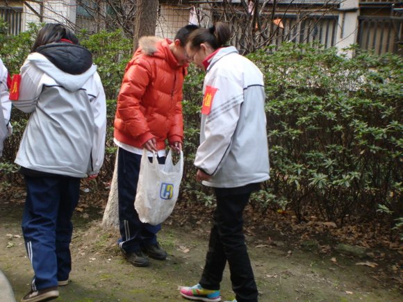 活动在3月4日下午举行,少先队员们走出校门,走进社区,为社区的美丽洁净尽自己的一份力。刚进社区,踏入草坪,学生们就被眼前的场景所吓倒了,草地上五花八门、大大小小的垃圾各种各样。于是,大家迅速行动起来,有的同学手拿垃圾袋,有的同学手拿捡垃圾的钳子,有的同学用眼睛不停在搜寻,把社区角角落落的垃圾拣了个遍。同学们在矮树丛中钻进钻出,认真的捡着,一个塑料袋,一个烟头,甚至一张小纸屑都不放过。过了不一会,手中的垃圾袋都已塞满了垃圾,而社区也变的更加的整洁与干净。