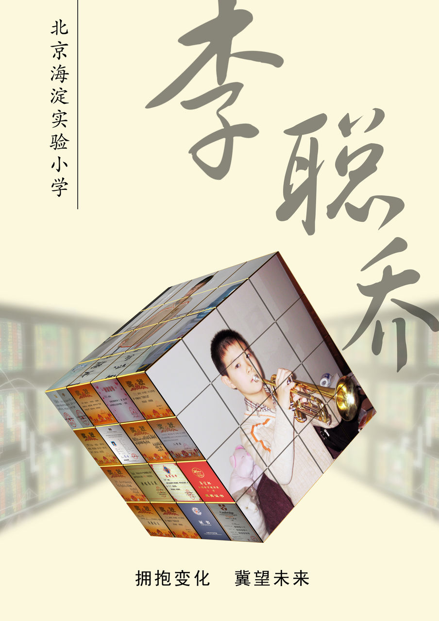 封面:以黄色为主色调,以变化为主题,魔方代表变化,“拥抱变化,冀望未来”中拥抱变化源于美国的一本关于极限编程的中译书名,意为以积极开朗乐观的心态去面对即将到来的变化或转变,同时以美好的愿望憧憬未来。“李聪乔”为仿书法柳体,运用魔方及魔方中的照片呼应学生的爱好和特长。
