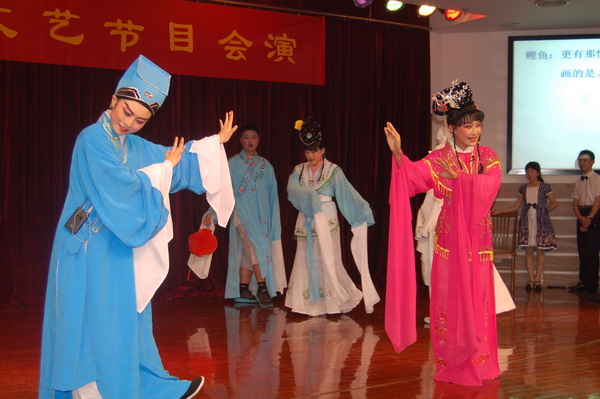 5月24日下午第二节课后,校图书馆报告厅人头攒动,演员们在做表演前最后的调试,随着主持人的就位,同学们坐定,演出正式拉开了帷幕。