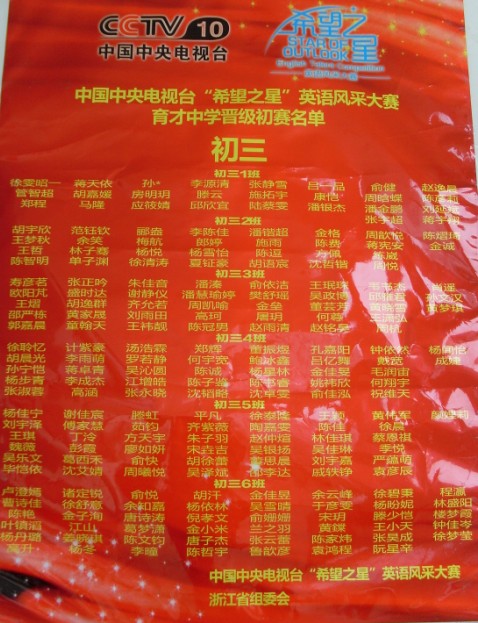 杭州育才中学:央视“希望之星”英语风采大赛育才中学晋级名单