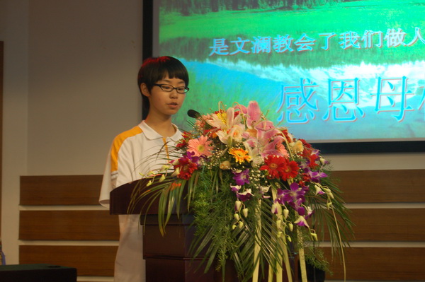 今年中考状元徐恩迪同学代表本届初三学生致辞。她回顾了校园生活的有规律、丰富和温情的特点后,向全体初三老师发出了感恩的声音:“在中考冲刺的最后一个月里,是老师们鼓励着同学们有勇气面对中考,给同学们以智慧和力量,永远做同学们的坚强后盾。”她代表初三同学表示一定做到“今日我以文澜为荣,明日文澜以我为荣”,并祝愿母校的明天更上一层楼。最后,她代表全体初三同学向家长们表达感恩之情,感恩父母对自己的付出,陪伴自己渡过人生路上的坎坷难关。“谁言寸草心,报得三春晖。”她相信所有同学都会带着父母的期待走向成功。
