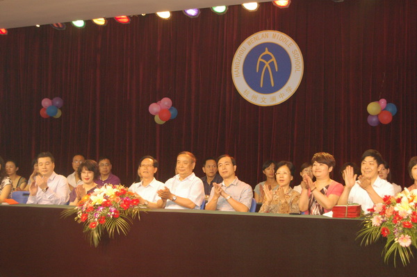 6月21日下午,我校在图书馆三楼报告厅隆重举行本届初三学生的毕业典礼。校领导任继长校长、徐青青书记和薛莹副校长与全体初三学生、任课教师和部分同学家长欢聚一堂,见证了这个感人至深的毕业典礼。校领导任继长校长,2011届初三学生代表、今年杭州市中考状元徐恩迪同学,家长代表谢峰先生,教师代表林萍老师分别做了激情洋溢的演讲,给与会听众留下深刻难忘的印象。