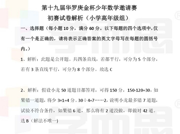 | 第十九届华杯赛初赛(小学高年级组)试题解析 |