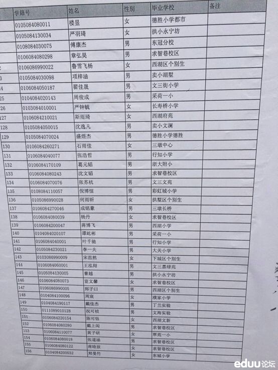 小升初:2014杭州文澜中学电脑派位名单(4)