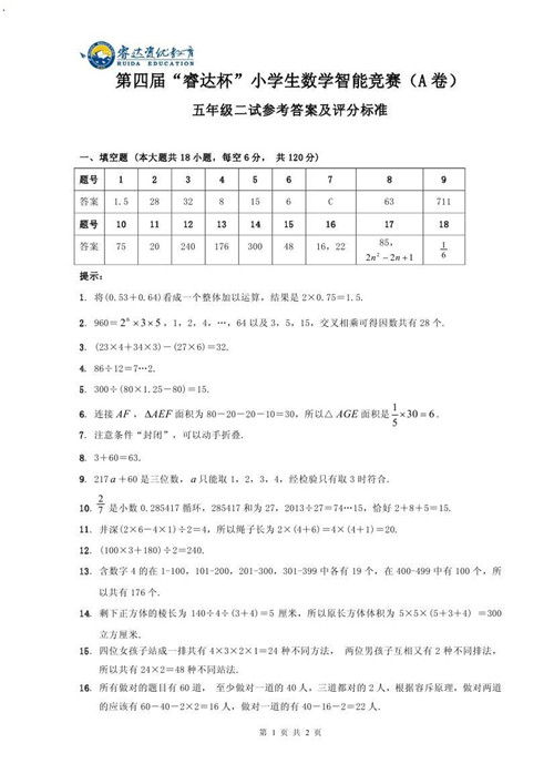 2013年睿达杯二试五年级小学数学答案 杭州奥数网 2014-07-16 14:02:19 杭州奥数网讯:2013年睿达杯二试已经完毕,小编整理了二试的答案。 2013年睿达杯二试五年级小学数学答案 【查看原帖参与讨论】