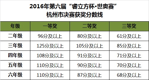 2016第六届世奥赛决赛成绩及获奖分数线公布
