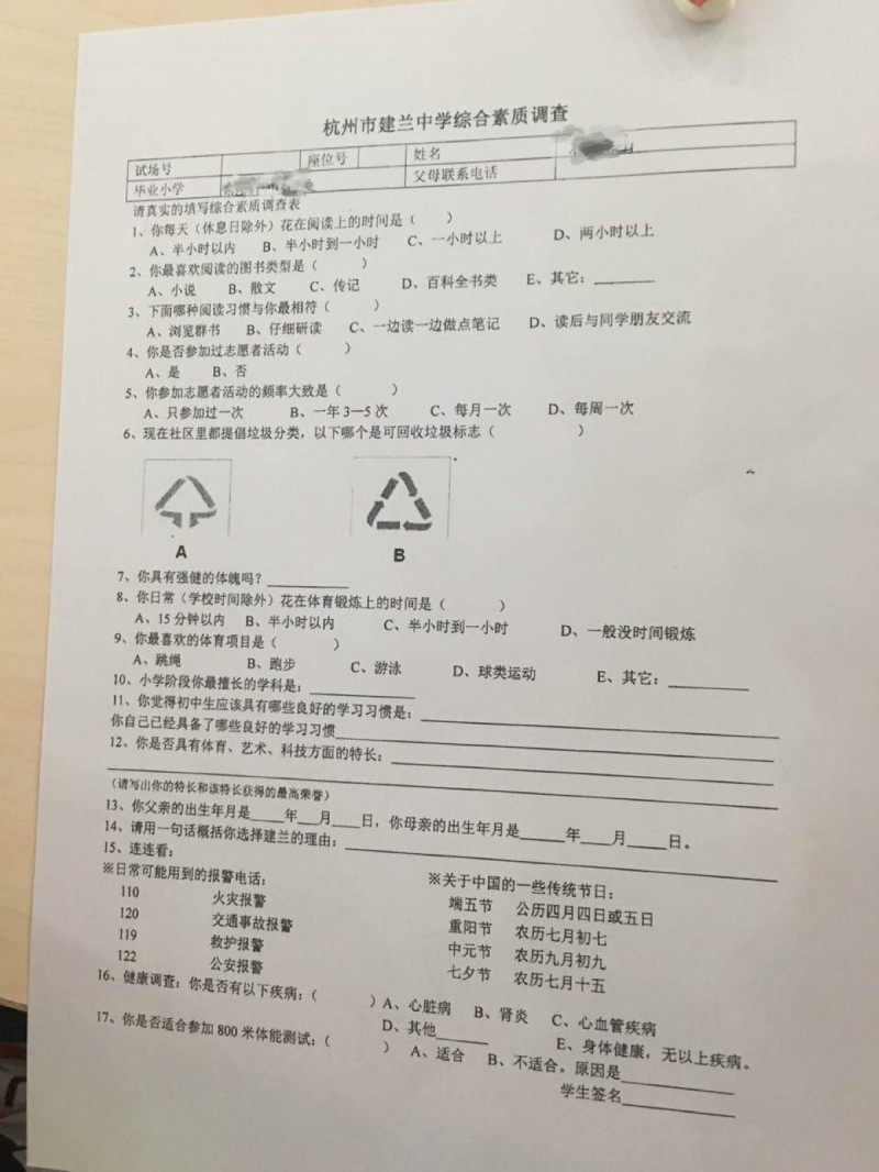 谈前,每位学生先填下面这份综合素质调查问卷: