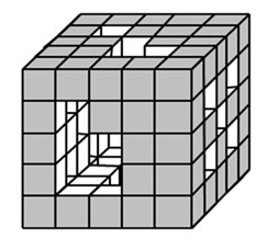 2.一个由125个同样的小正方体组成的大正方体,从这个大正方体中抽出若干个小正方体,把大正方体中相对的两面打通,结果如右图。问下图中剩下的小正方体有多少个?
