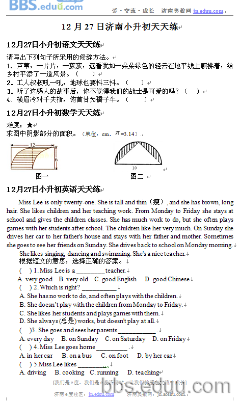 济南小升初天天练栏目每日精选一道题,名师指导讲解,为你升学把脉。