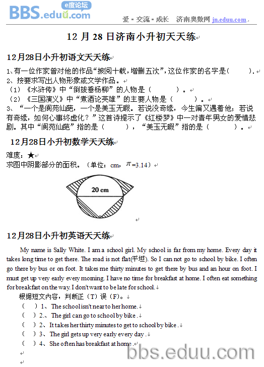 2011.12.28济南小升初天天练模拟题