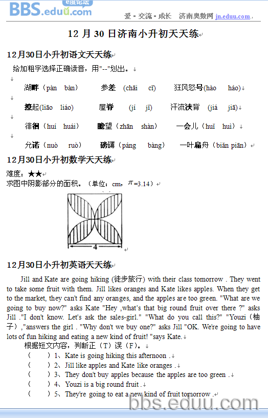济南小升初天天练栏目每日精选一道题,名师指导讲解,为你升学把脉。