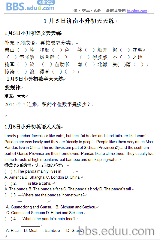 2012.1.5济南小升初天天练模拟题