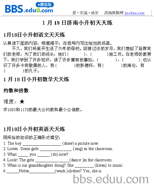 2012.1.18济南小升初天天练模拟题