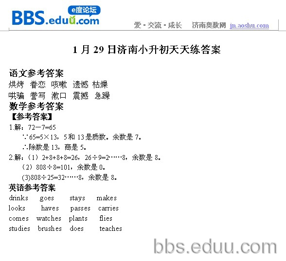 2012.1.29济南小升初天天练模拟题答案