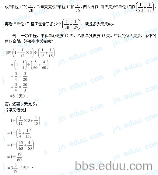 济南小升初数学考试必知:工程问题中的常见错误