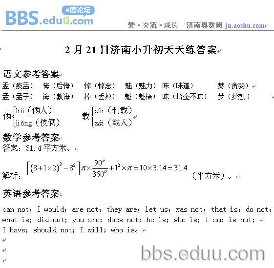 2012.2.21济南小升初天天练模拟题答案